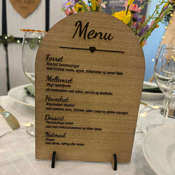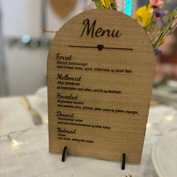 Menukort på fod, perfelt til f.eks. buffet eller til at stille på hvert bord.