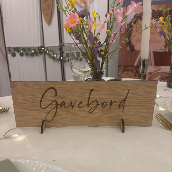 Skilt med teksten Gavebord