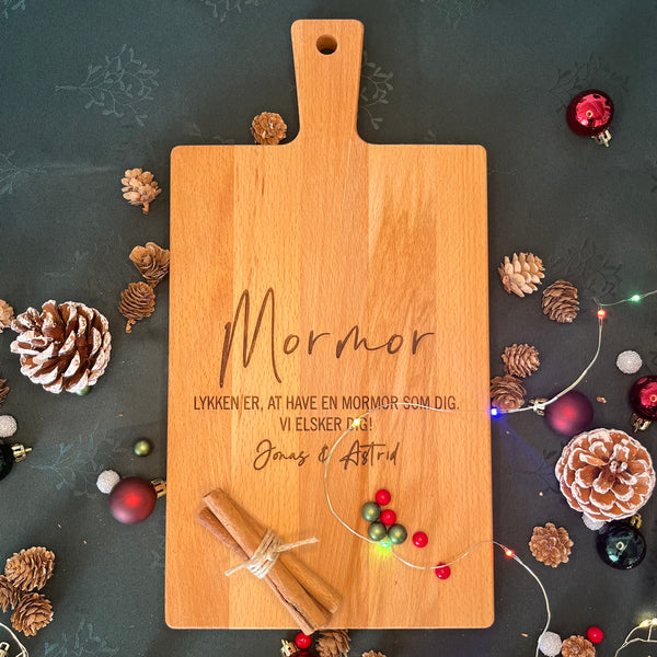 Glæd én du holder af med et personligt skærebræt, graveret med tekst efter dine ønsker.