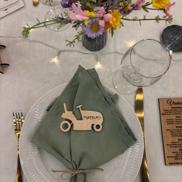 Bordkort formet som en havetraktor der passer perfekt til barnedåben, konfirmationen eller fødselsdagen.