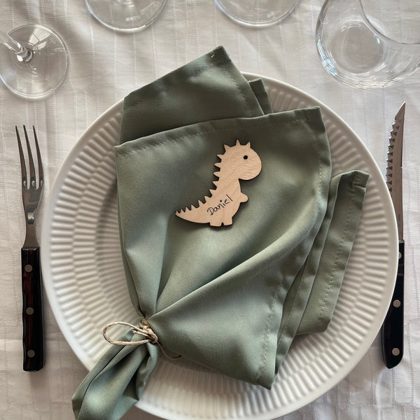 Bordkort formet som en dinosaur - T-Rex. Vores bordkort med dinotema passer perfekt til barnedåben, konfirmationen eller fødselsdagen.