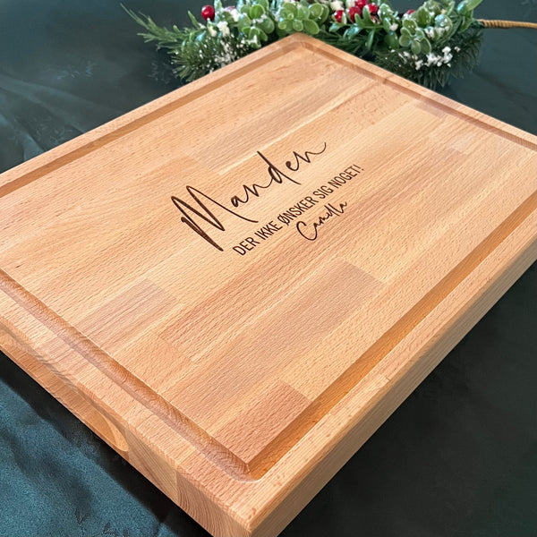 Glæd én du holder af med et personligt skærebræt, graveret med tekst efter dine ønsker.