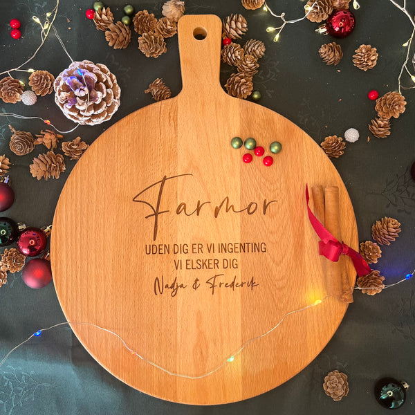 Glæd én du holder af med et personligt skærebræt, graveret med tekst efter dine ønsker.