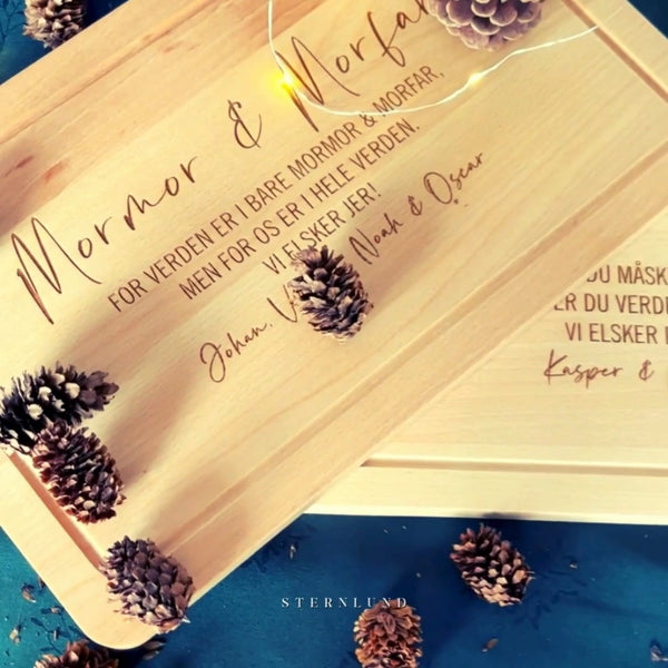 Glæd én du holder af med et personligt skærebræt, graveret med tekst efter dine ønsker.